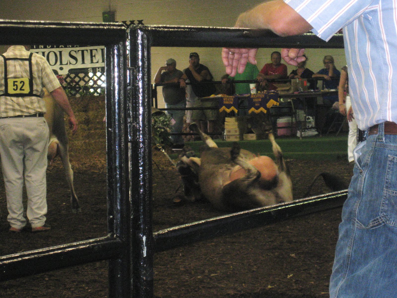 Saturday I got up, and tended to my house-sitting duties (taking care of the dogs, and chickens.) I fed the inside dog, the outside dogs, and then headed out for the chickens. I fed, watered them, and collected the eggs. I was in a hurry to get to the state show, so I put the eggs in the fridge without washing them first. I headed out to the State Show with mi madre until duty called and semen once again had to be delivered. (on the bright side...I only have a few weeks left of delivering!)